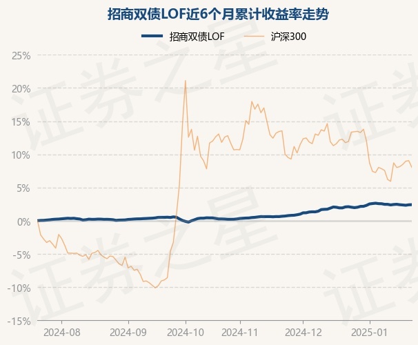 本站消息,1月22日,招商双债LOF最新单位净值为1.5996元,累计净值为1.7386元,较前一交易日上涨0.02%。历史数据显示该基金近1个月上涨0.33%,近3个月上涨2.06%,近6个月上涨2.42%,近1年上涨4.91%。该基金近6个月的累计收益率走势如下图:
